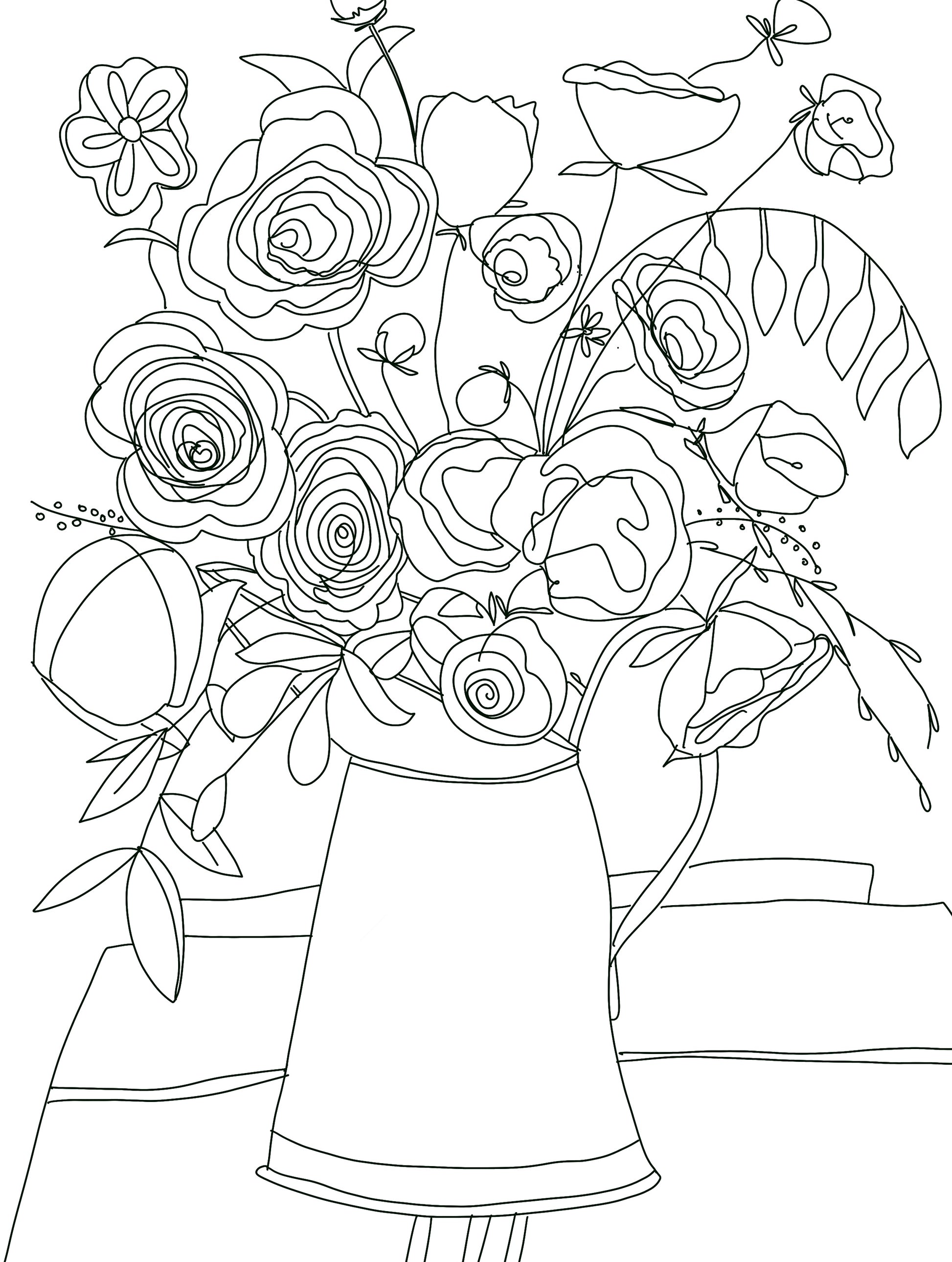 Flowers in a Watering Can Digital Coloring Page for ProCreate